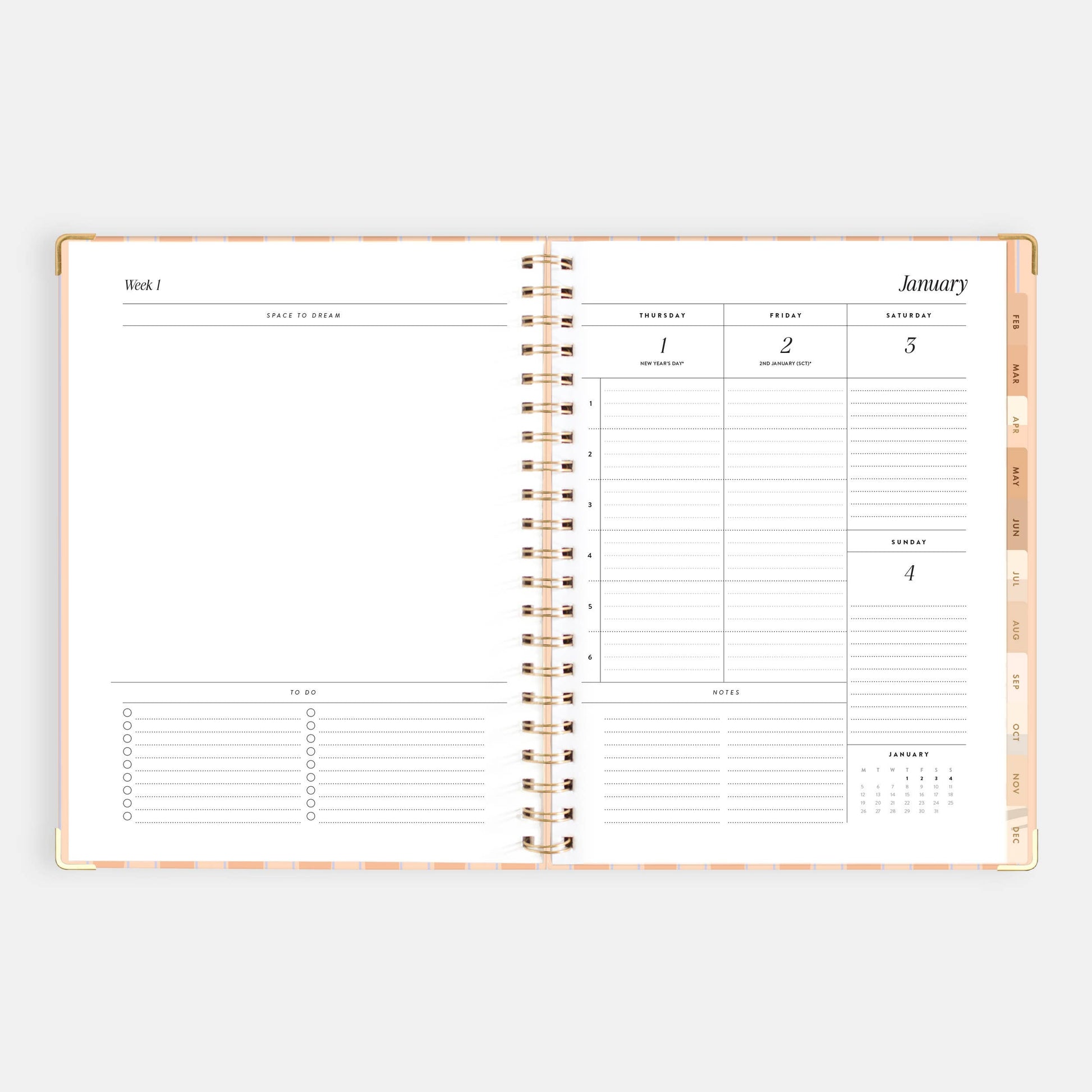 2026 Coral Stripe A4 Academic Vertical Spiral Planner