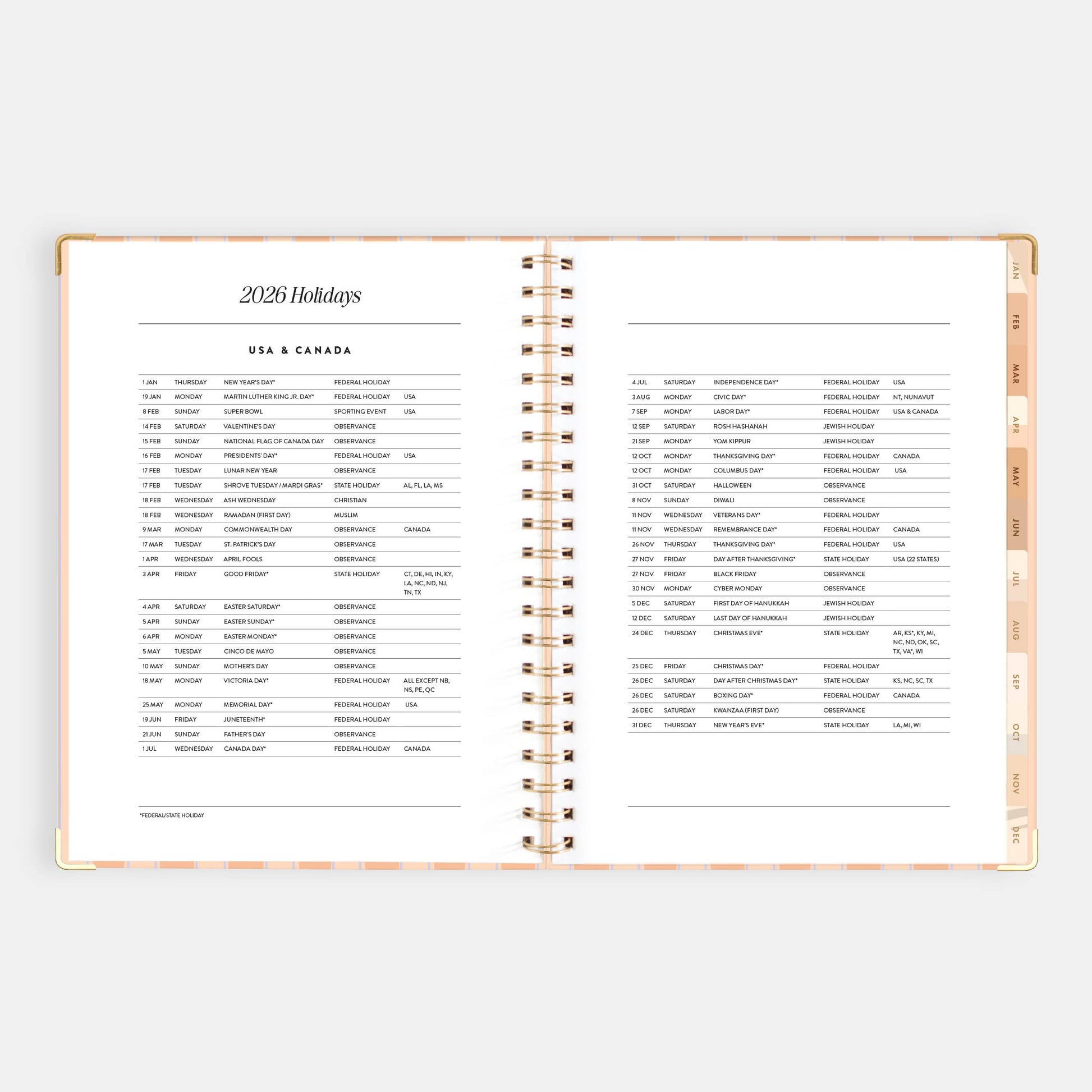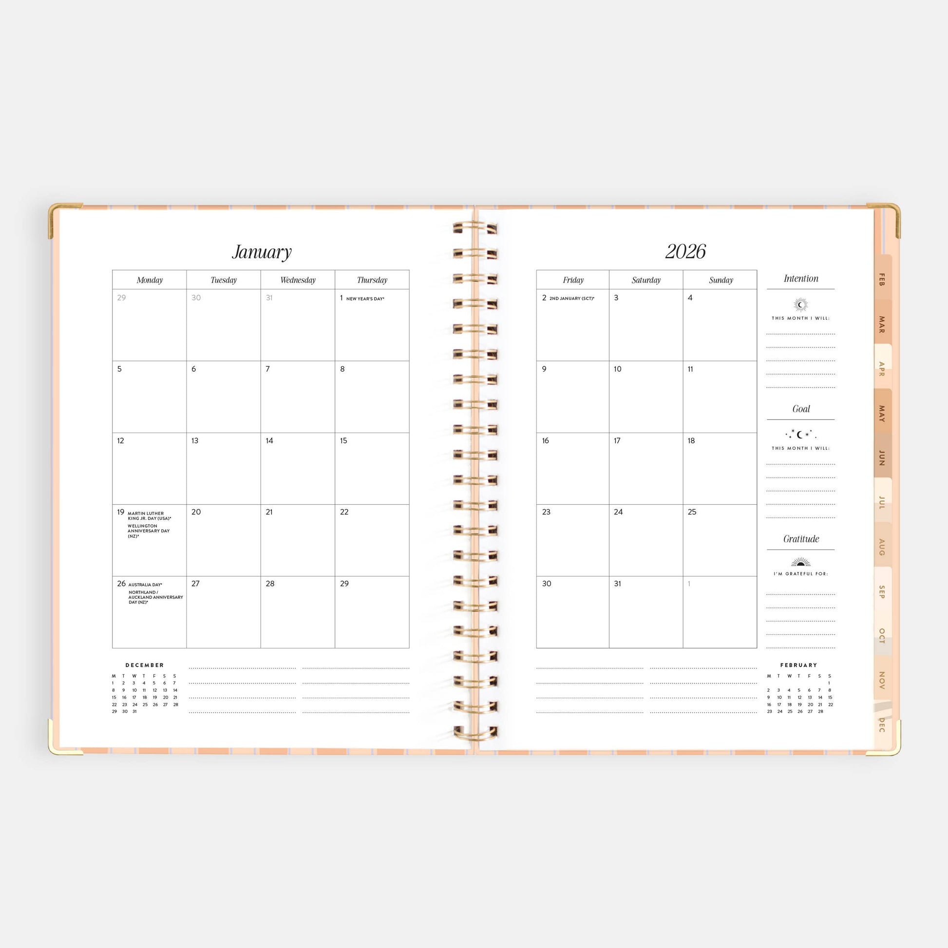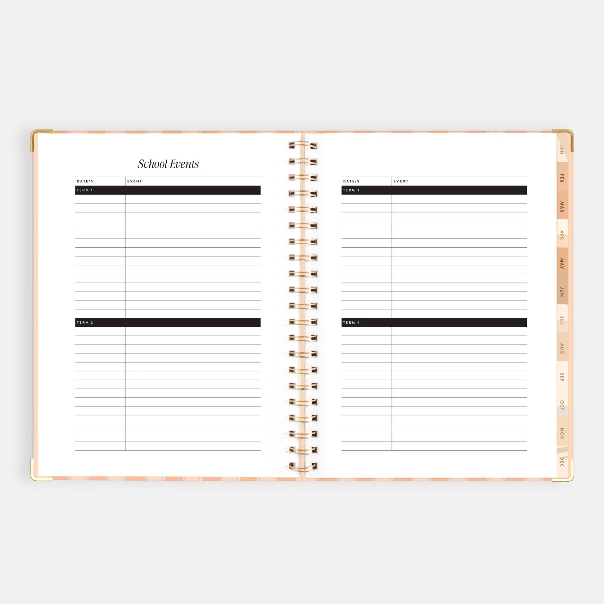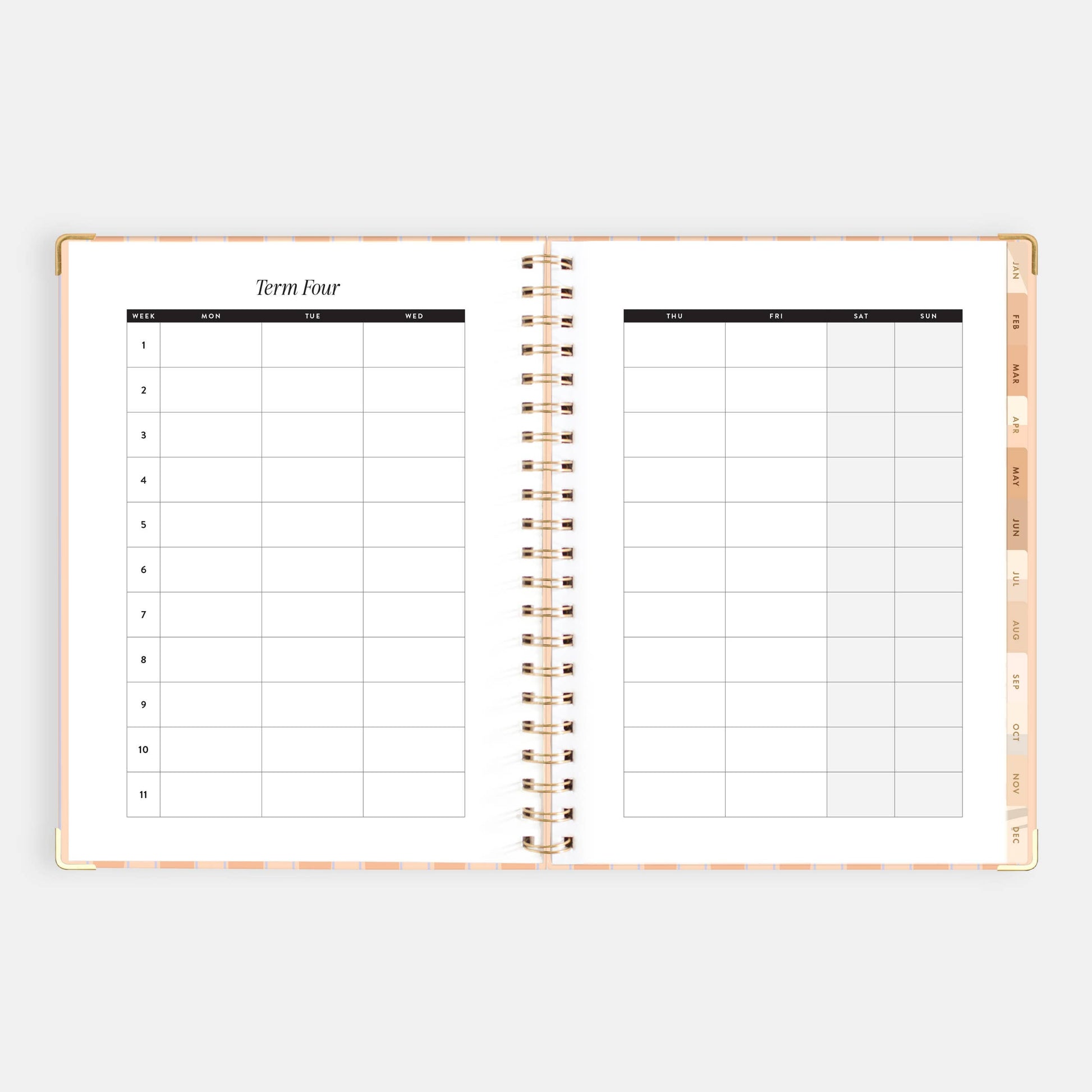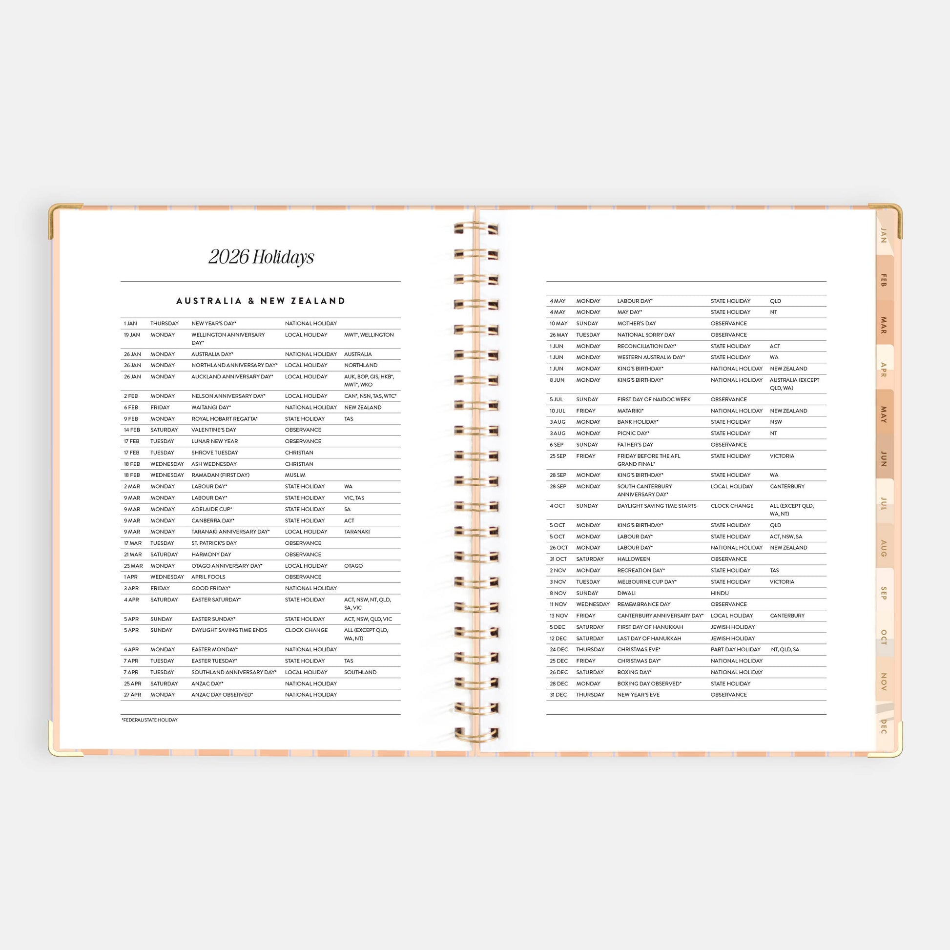 Our best-selling, beautiful and super functional academic planners are designed for diary-loving teachers and students based in Australia & New Zealand for the 2026 calendar year (Jan-Dec). Full of info, details and useful planners and trackers, helping you to stay super organised and on track. Weekly vertical layout, colourful divider pages, week-to-a-spread layout, yearly, monthly and term planners, school bell times, school holidays and term dates (state/government schools), deadlines and events planner, holidays and observances for Australia, USA, Canada, UK and New Zealand, PD tracker, expenses tracker, Assessment tracker. Featuring premium 120gsm paper, waterproof coating, dark ink for increased legibility. 226 pages.