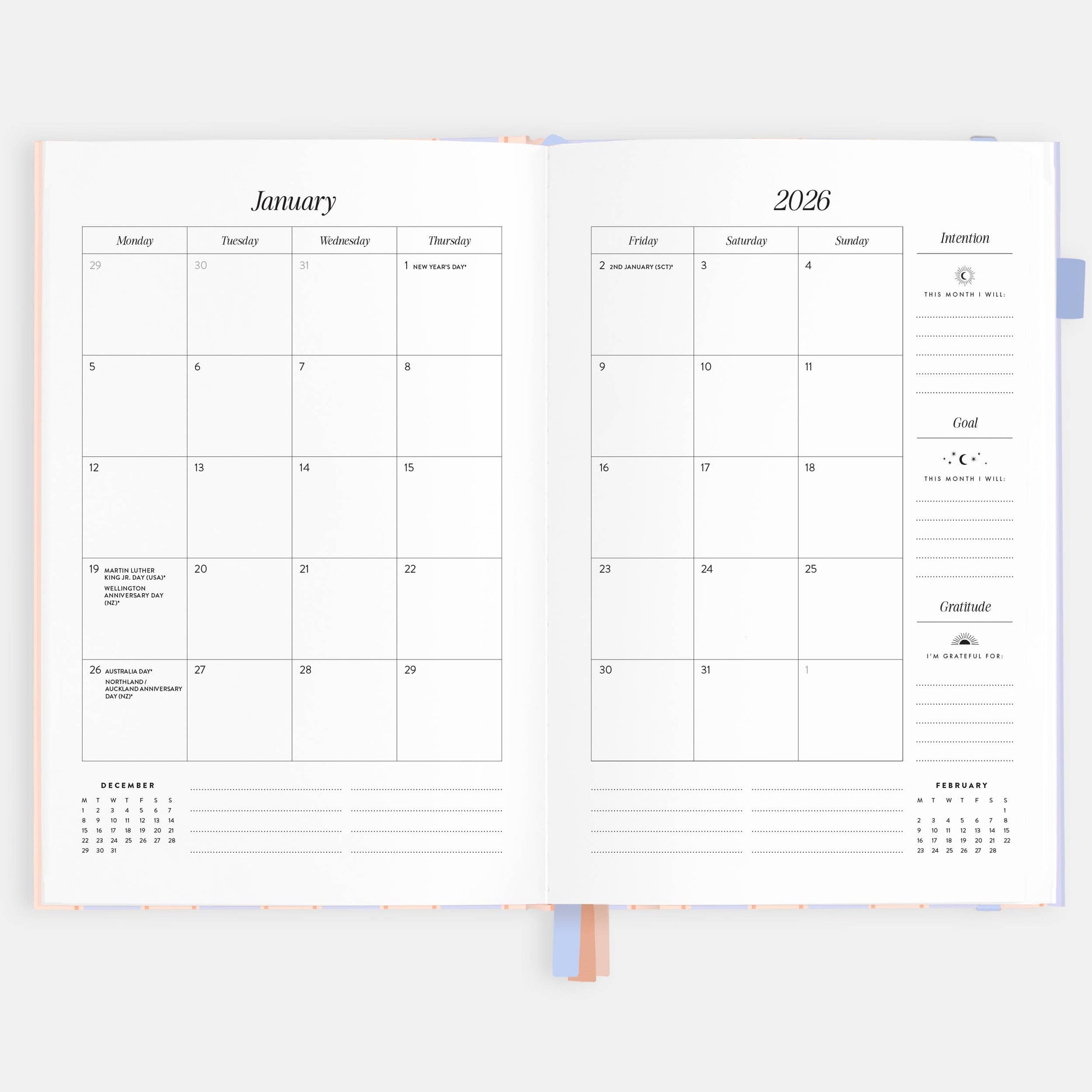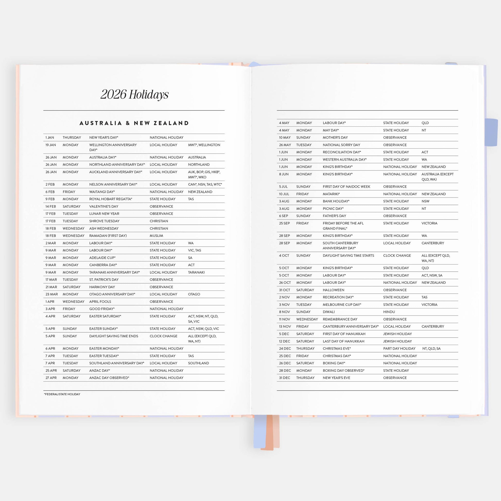 Our best-selling, beautiful and super functional academic planners are designed for diary-loving teachers and students based in Australia & New Zealand for the 2026 calendar year (Jan-Dec). Full of info, details and useful planners and trackers, helping you to stay super organised and on track. Weekly vertical layout, colourful divider pages, week-to-a-spread layout, yearly, monthly and term planners, school bell times, school holidays and term dates (state/government schools), deadlines and events planner, holidays and observances for Australia, USA, Canada, UK and New Zealand, PD tracker, expenses tracker, Assessment tracker. Featuring premium 120gsm paper, waterproof coating, dark ink for increased legibility. 226 pages.