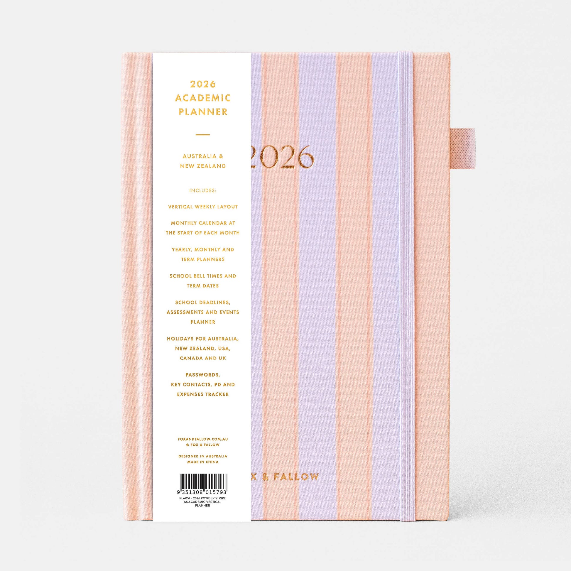 2026 Powder Stripe A5 Academic Vertical Planner