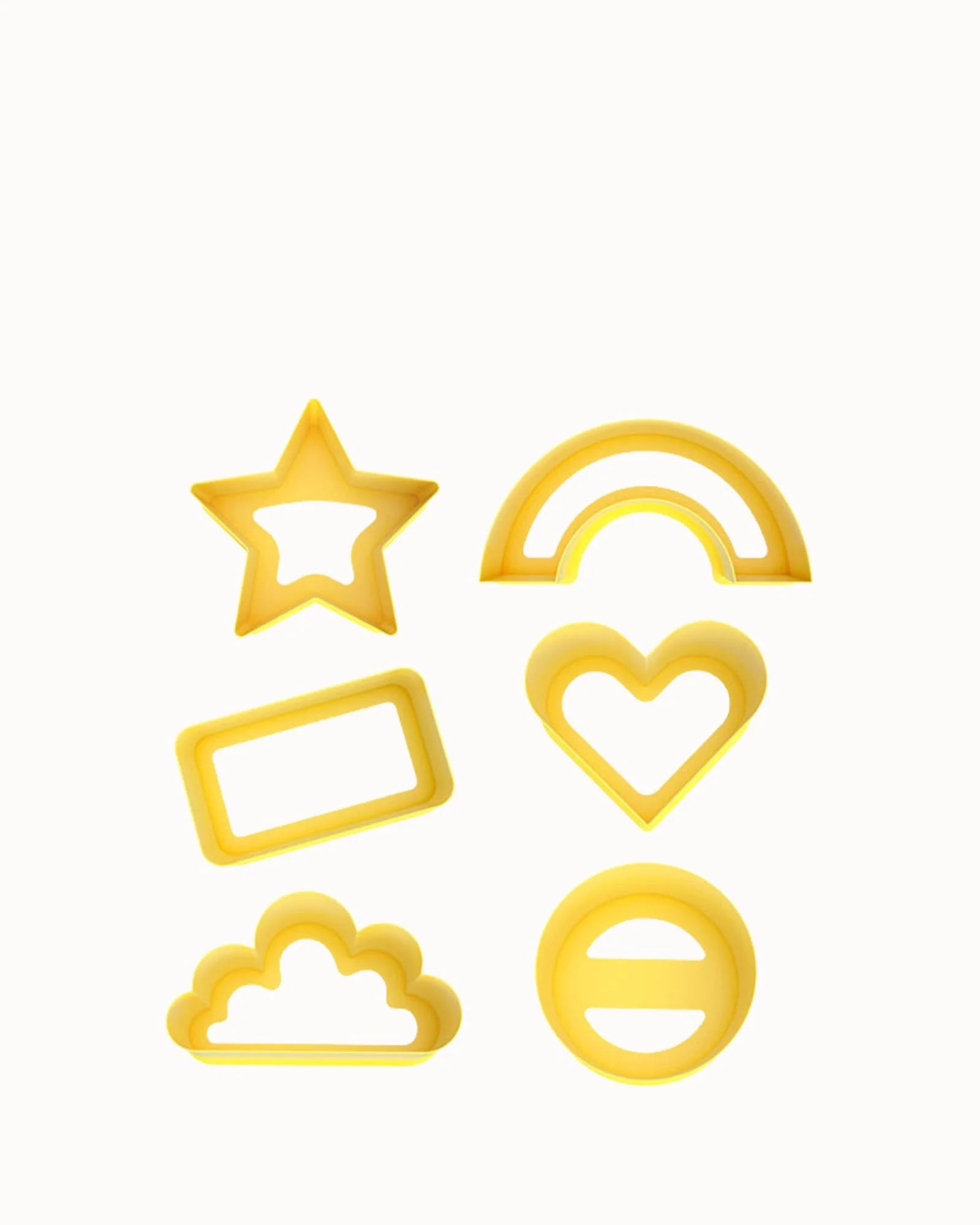 The Mini Bites Cutters are a set of six shapes: Circle, Cloud, Heart, Rainbow, Rectangle and Star. Pair different shapes together to create cool food art. Limited only by your imagination, the possibilities are endless!